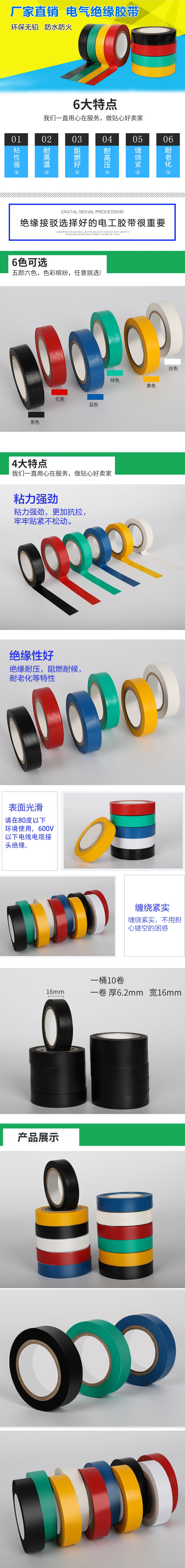 電工膠帶 防水PVC電氣絕緣膠帶 阻燃無鉛電工黑色紅膠布
