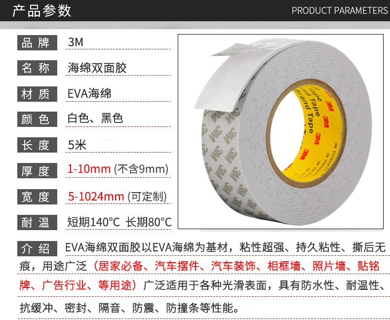 介紹EVA海綿雙面膠以EVA海綿為基材,粘性超強(qiáng)、持久粘性、撕后無(wú)