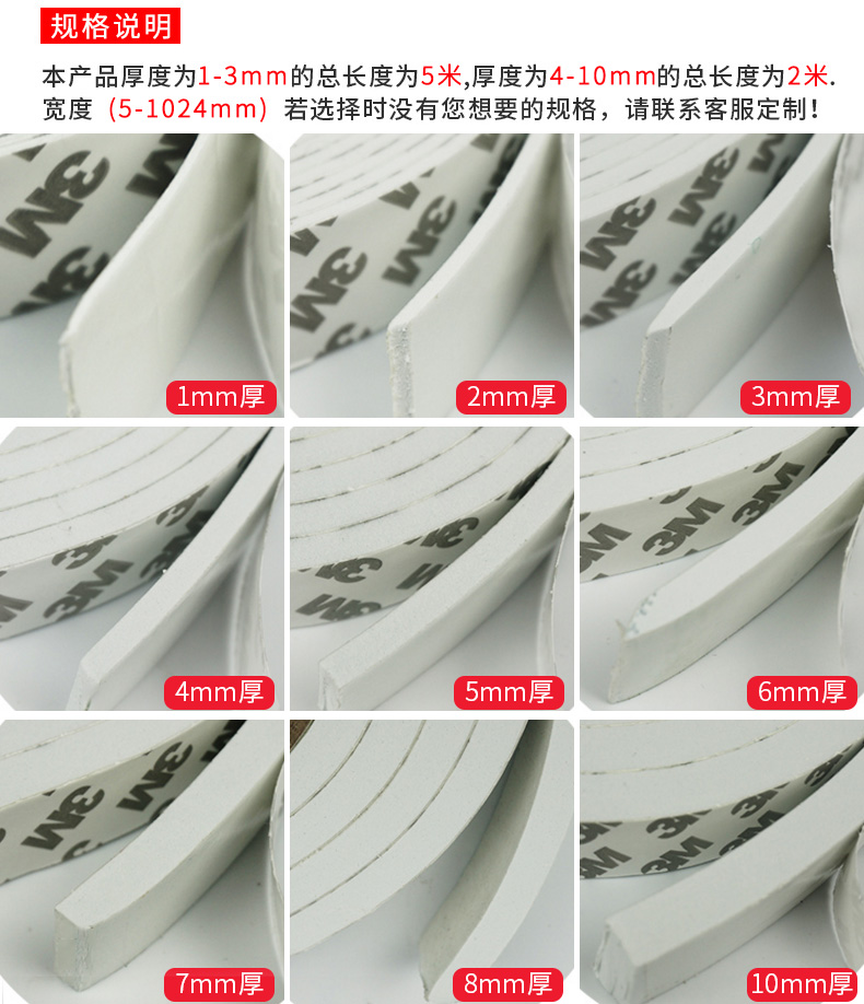 泡沫雙面膠帶高粘度墻膠無(wú)痕 白色/黑色長(zhǎng)度5米 1-2-3mm厚可選